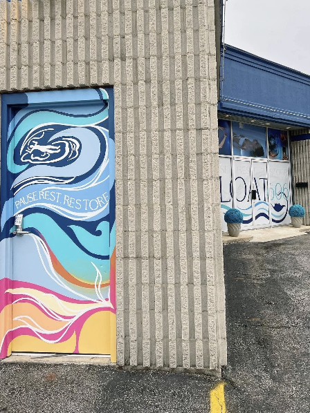 Aladdin's Art Gallery wanted a mural that was eye-catching and cool, and would draw in new customers. During the design process, the mural at Aladdin's Art Gallery started with inspirations from art history and the park just a couple blocks down. The swirls, stars and lily pads were inspired by Van Gogh and Monet. The fish and daffodils were inspired by Central Park.