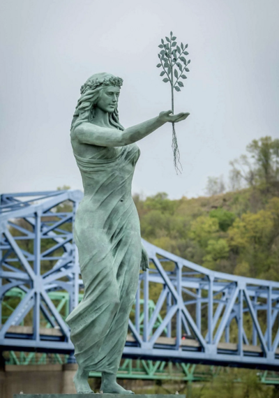It represents a new beginning or rebirth in Ashland a the region with the five rods in the sculpture symbolic of the four natural elements (earth, air, water, and fire) and God.